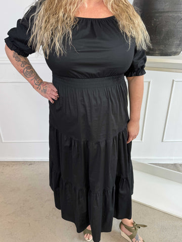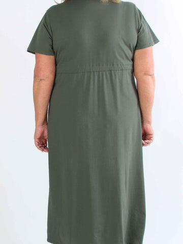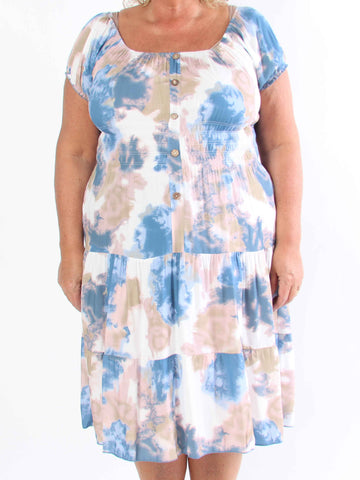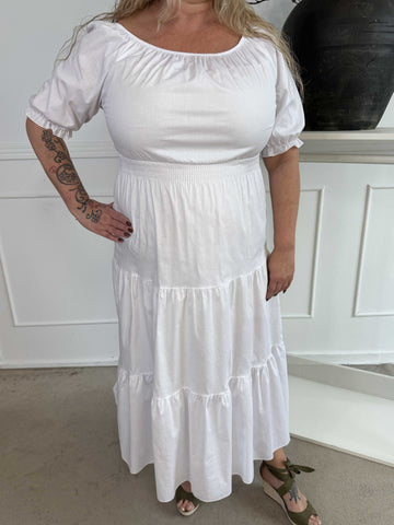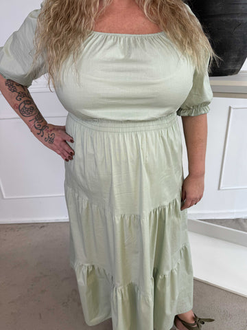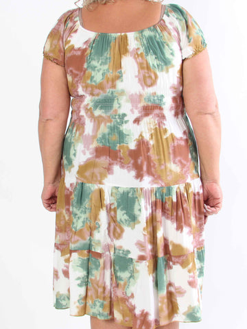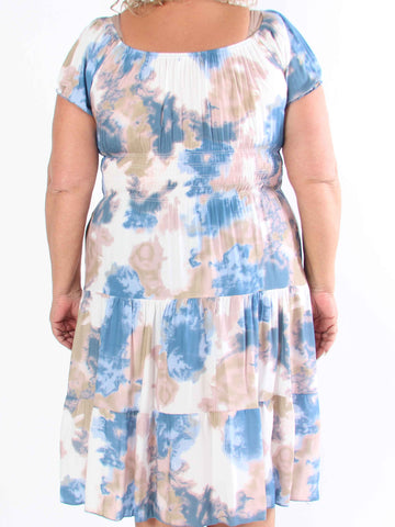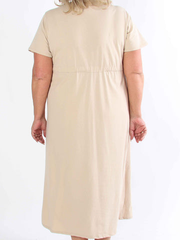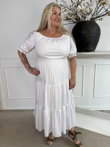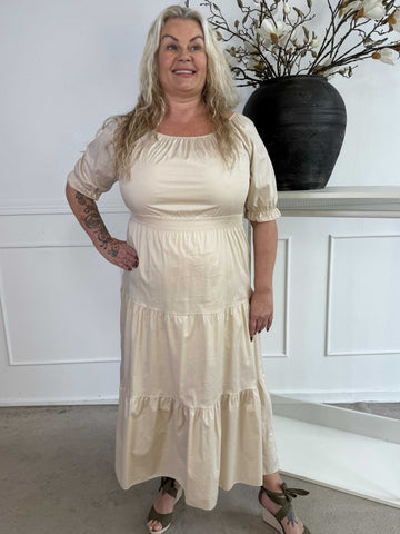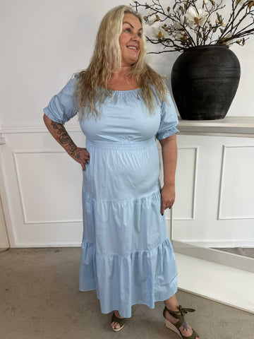 Kayce - Plus size-klänning i bomull med resår i halsringning och midja