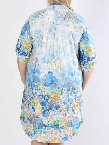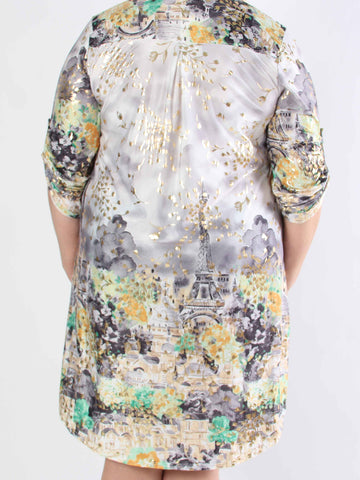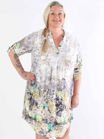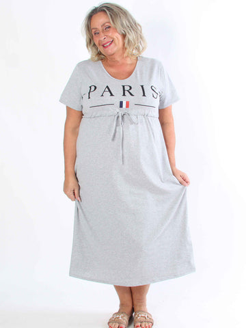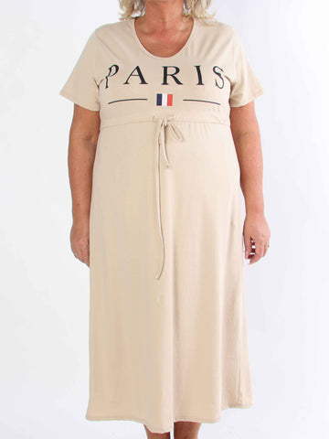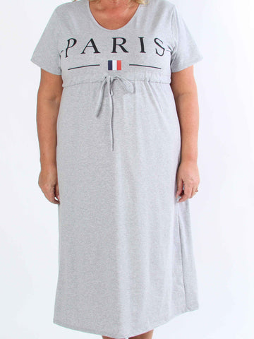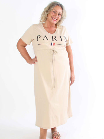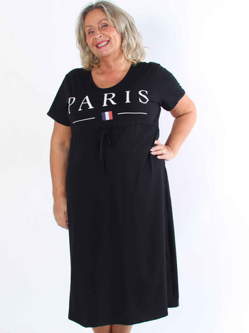 Alice - Plus size-klänning i bomull med Paris stående på bröstet
