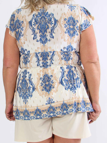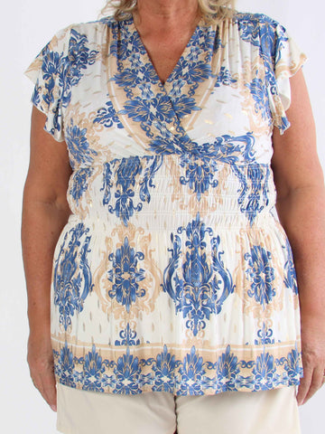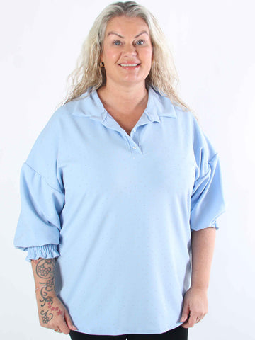 Esther - Plus size-tunika med volangärmar och elastisk halsringning