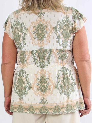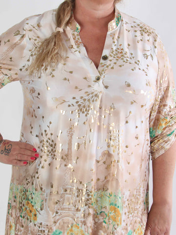 Ebba Gold Leaf Shirt - Elastisk plus size blus mönstrad med bladguld