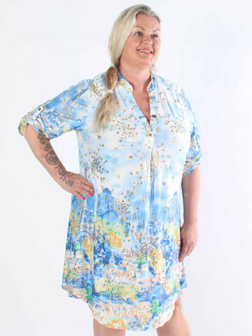 Celestine - Plus size bomullsskjorta med tryck och fickor