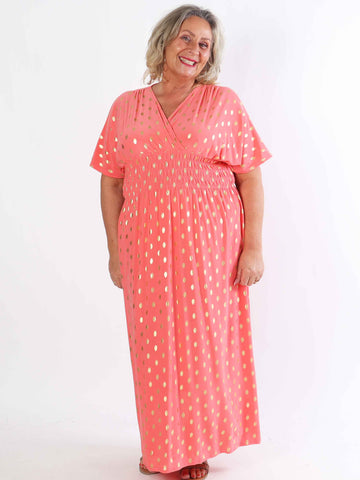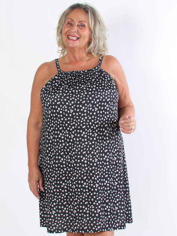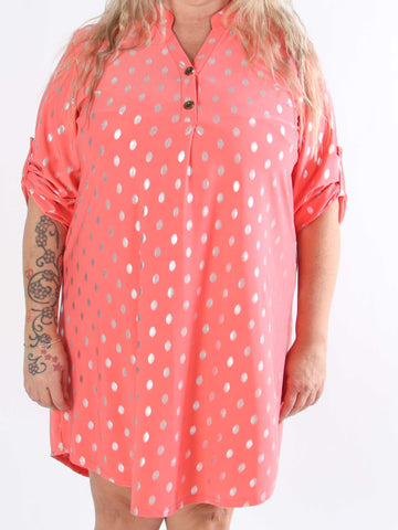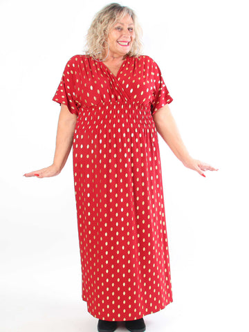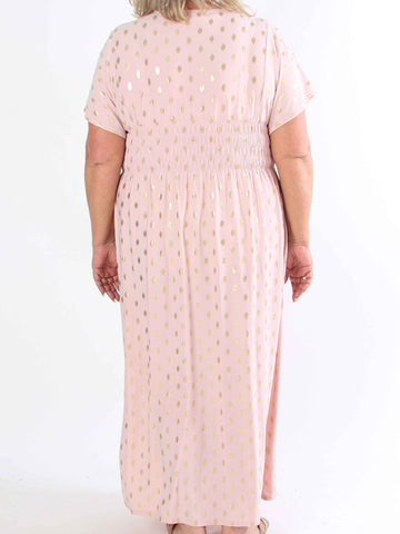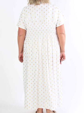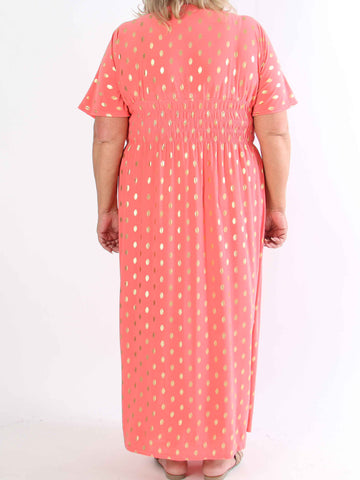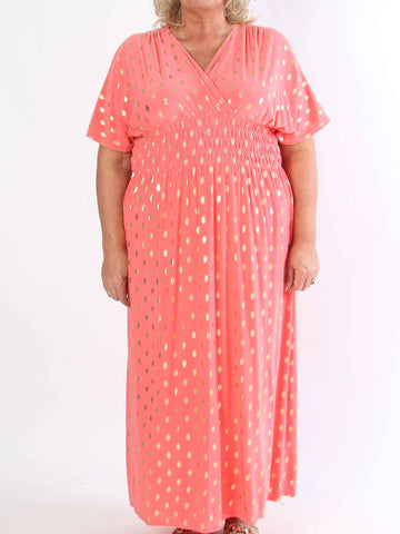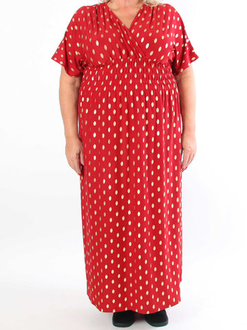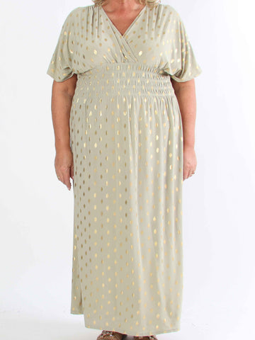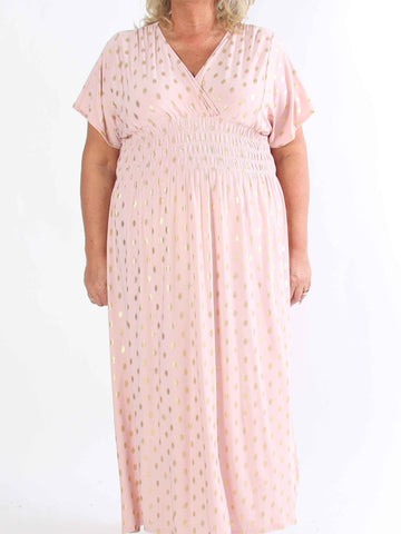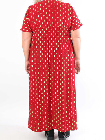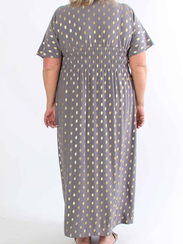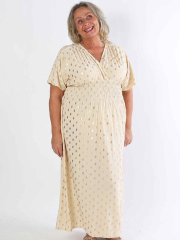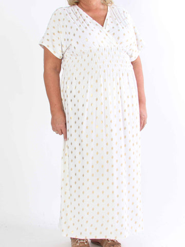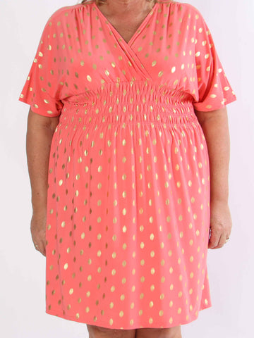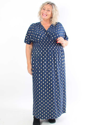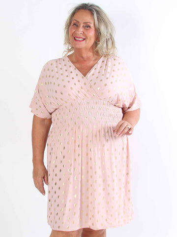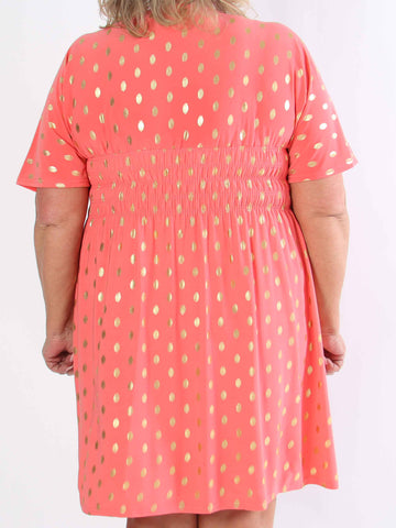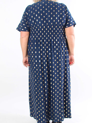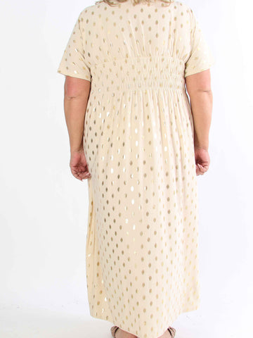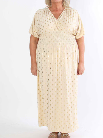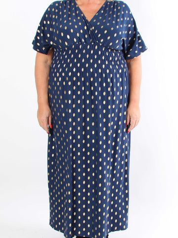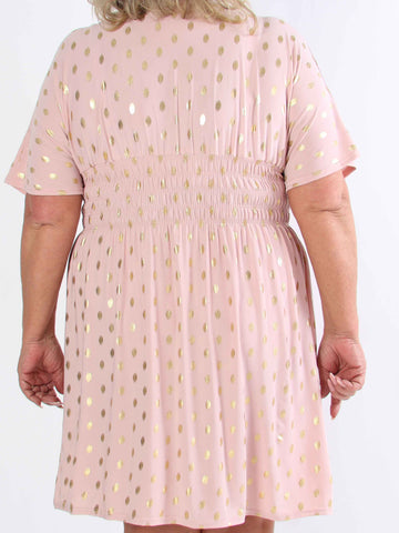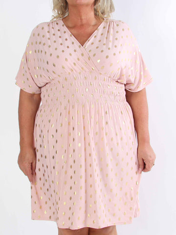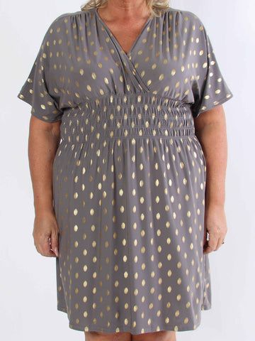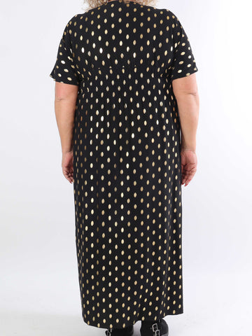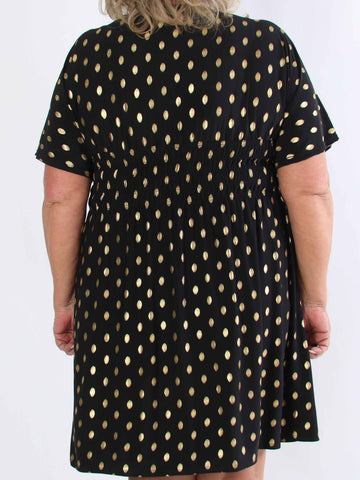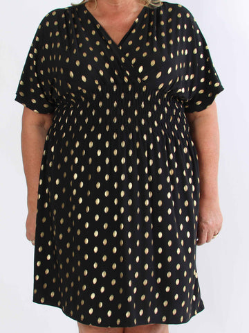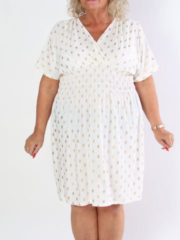 Pams Dot Short - Elastisk klänning i plus size med guldprickar