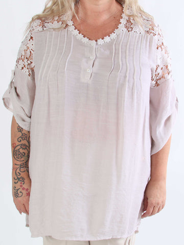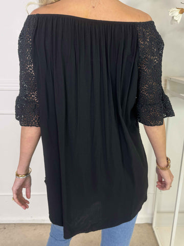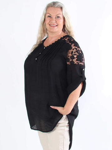 Leonora - Plus size-tunika med fladdermusärmar och spets