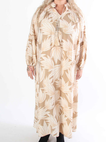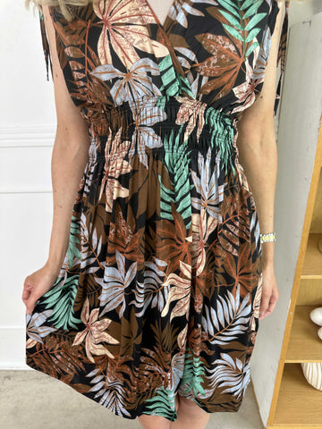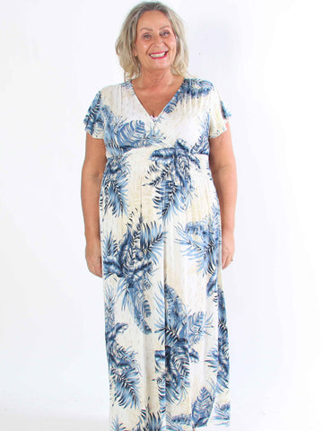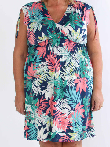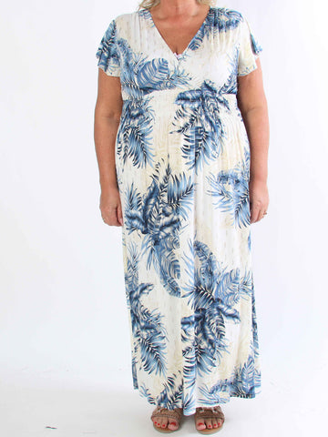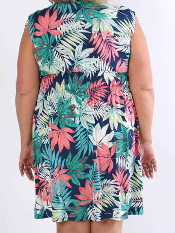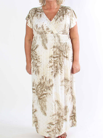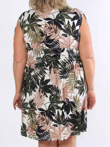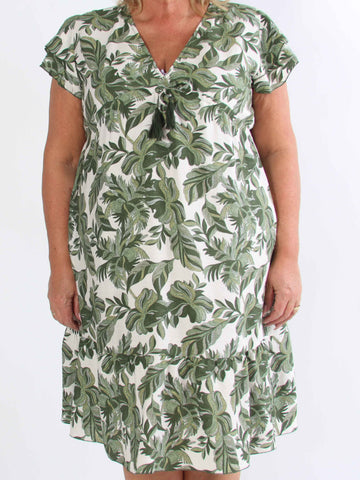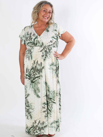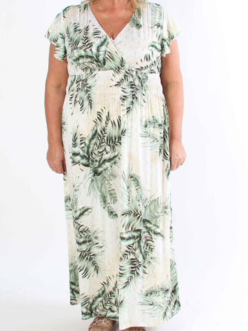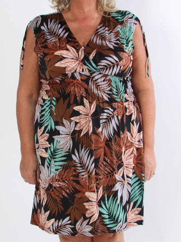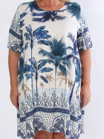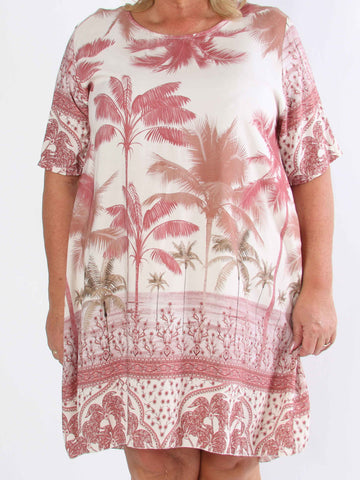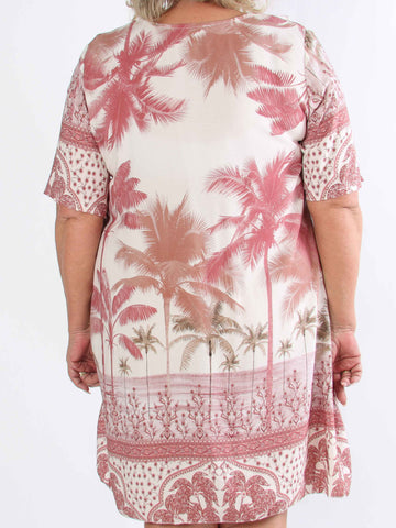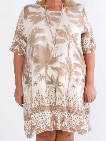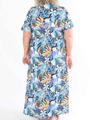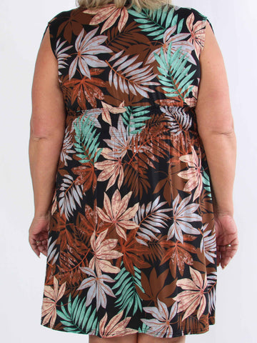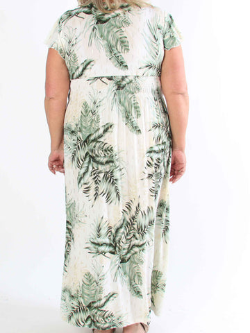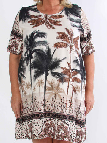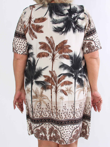 Julia - Sommarklänning i plusstorlek med palmer och mönster
