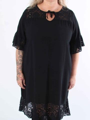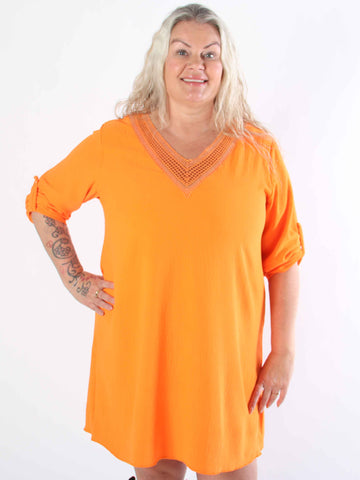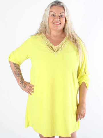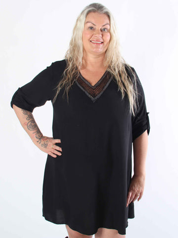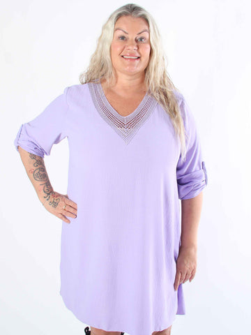 Fjola - Plus size tunikaklänning i bomull med spets fram