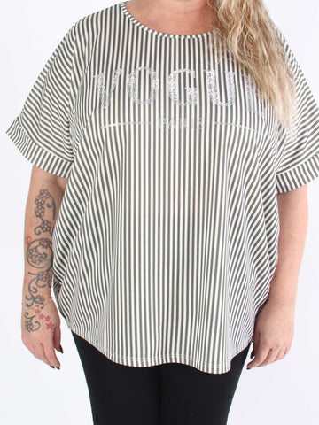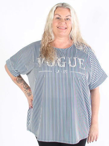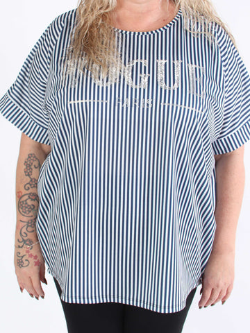 Mintu Stripe - Plus size t-shirt med vogue stående med glittrande similisten