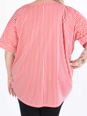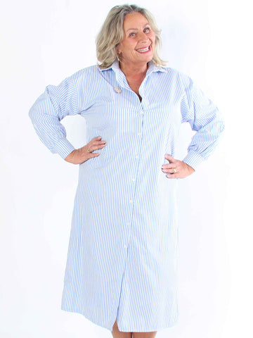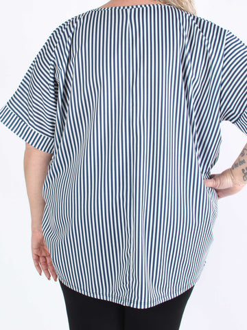Irena - Långrandig plus size skjorta i ström och vågigt tyg