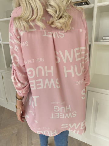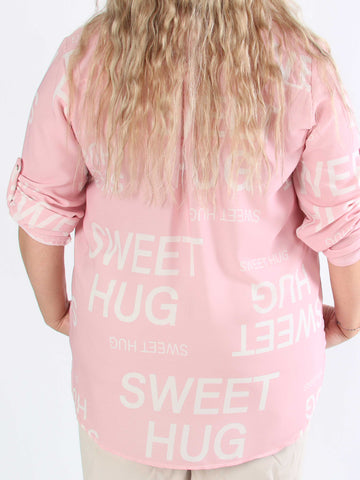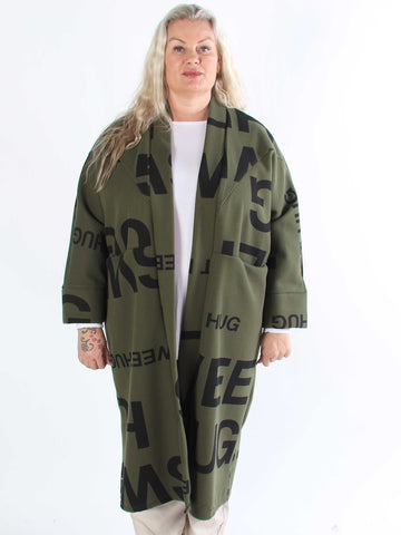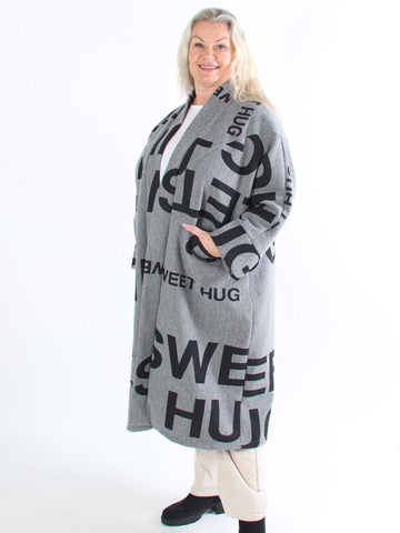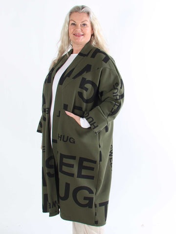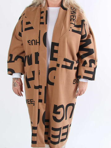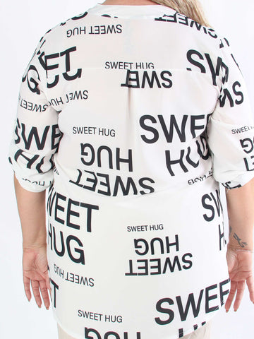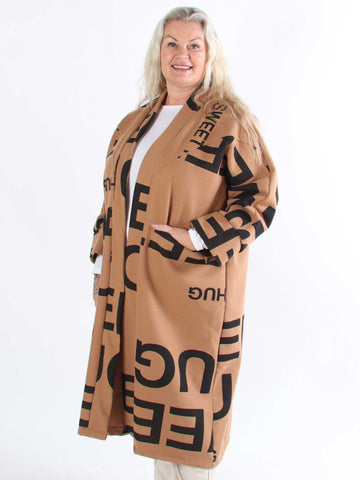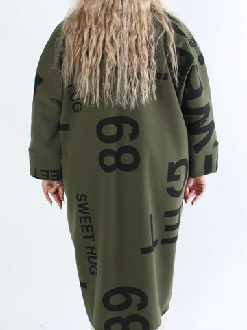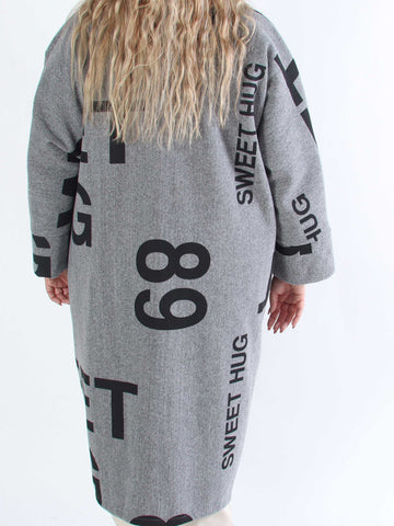 Annah Graphic - Plus size kappa med tydliga sömmar och text
