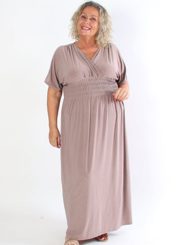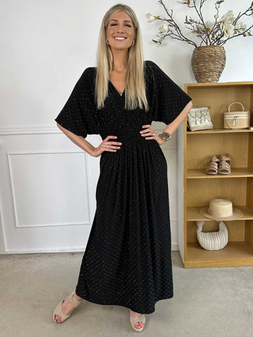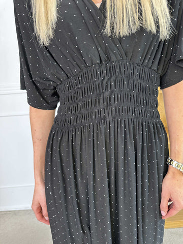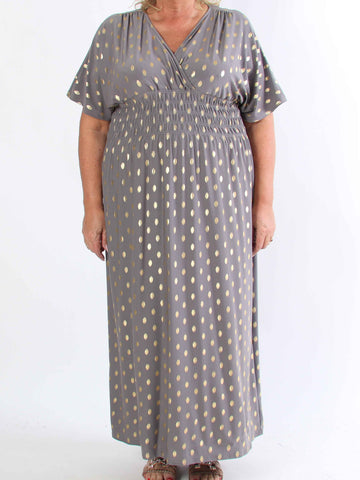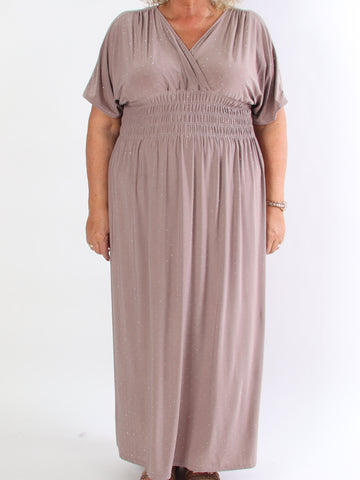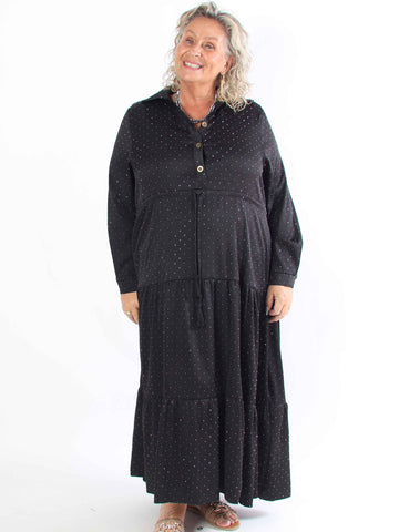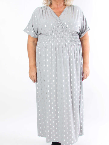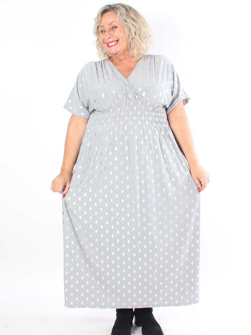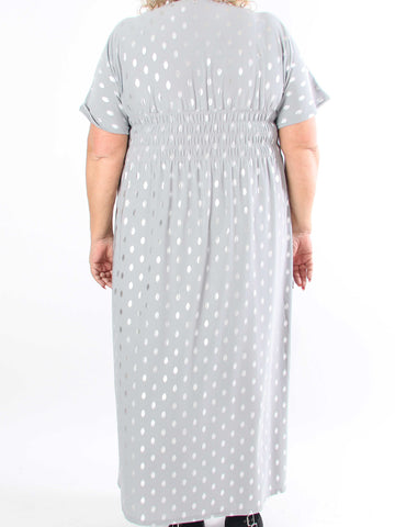 Ebba Silver Long - Elastisk plus size-klänning med silverprickar