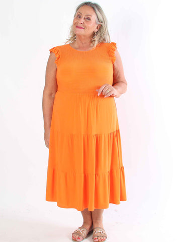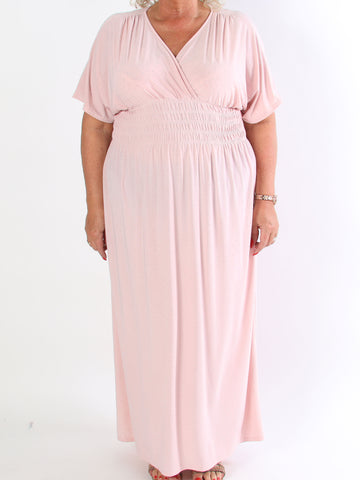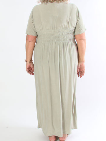 Monica - Plus size-klänning i viskos med smockad midja och puffärmar