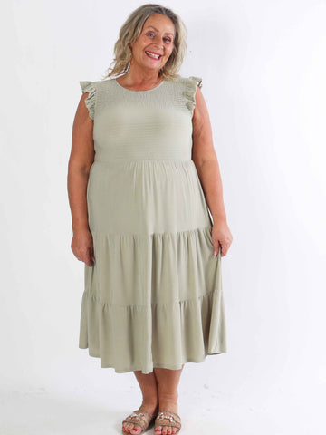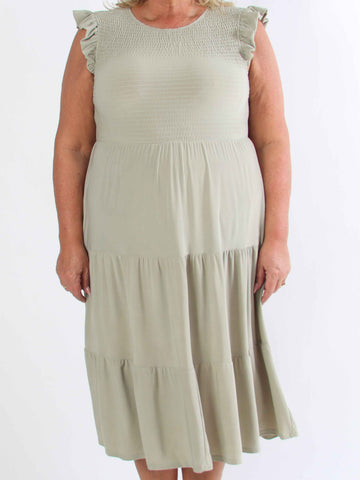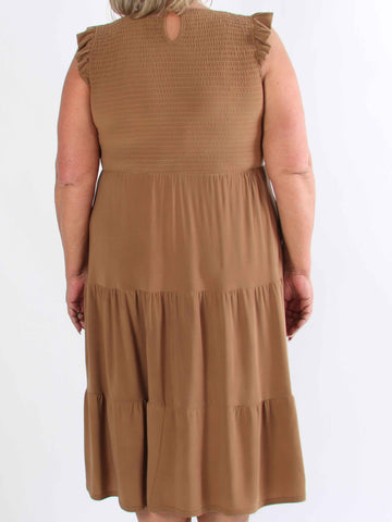 Kelly Sleeveless - Elastisk plus size-klänning med smockat bröst