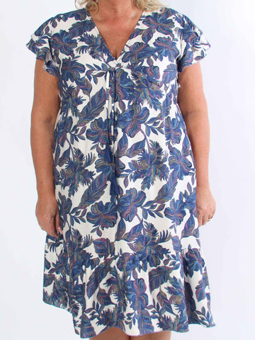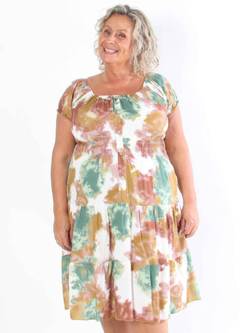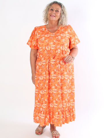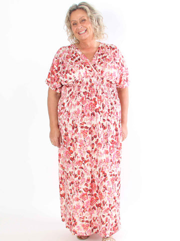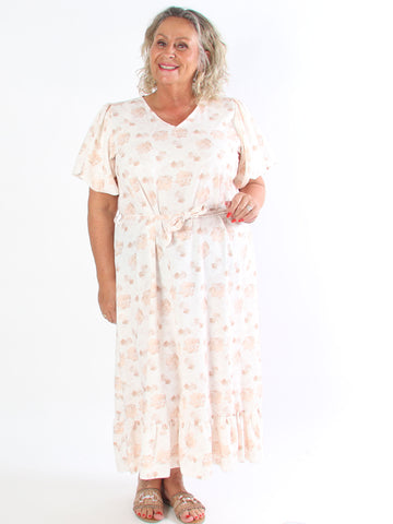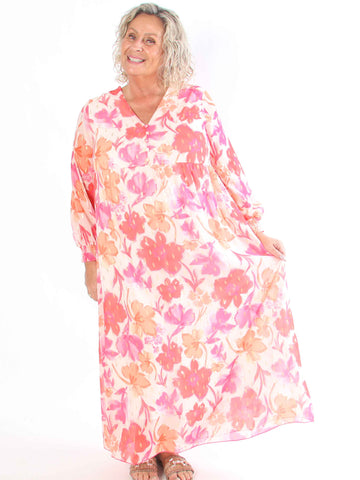 Tasha - Sommarklänning i viskos i stor storlek med blommigt tryck