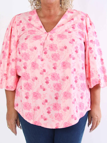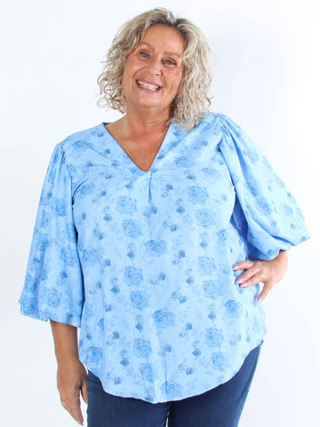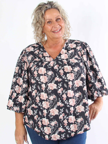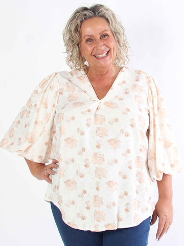 Lenora - Blommig plus size-tunika med puffärmar