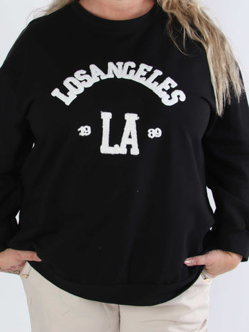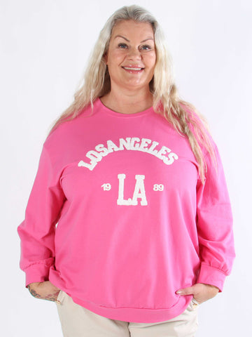 Magnolia - Plus size joggingtopp med LA skrivet i plysch