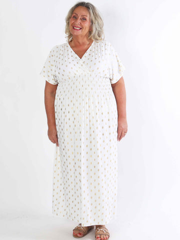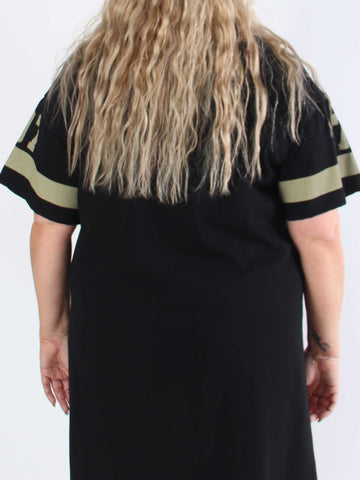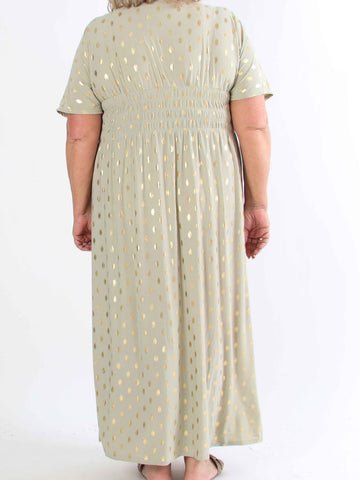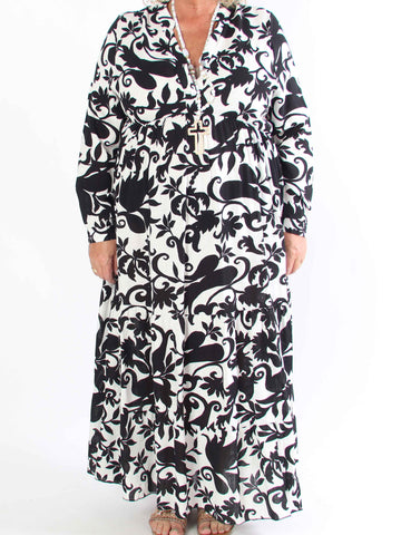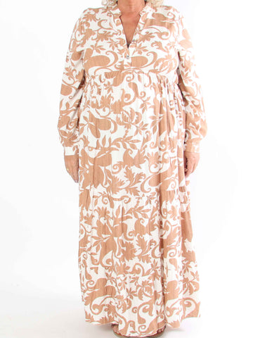 Ebba Paris Long - Elastisk mönstrad plus size klänning med gulddetaljer