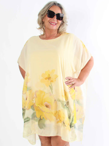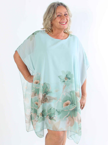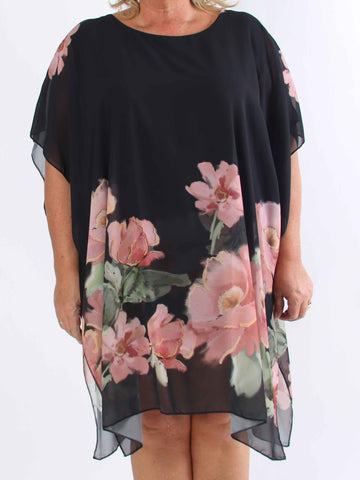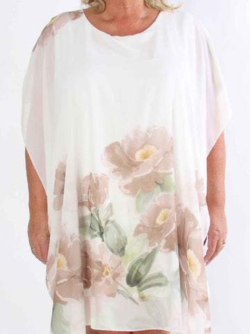 Minna - Blommig plus size-tunika i chiffong med viskostopp