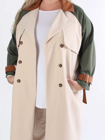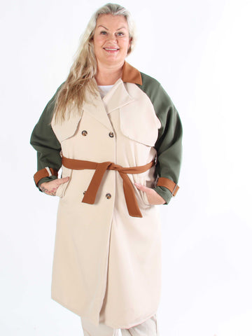 Neema - Lätt, flerfärgad trenchcoat i plusstorlek med knytband