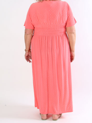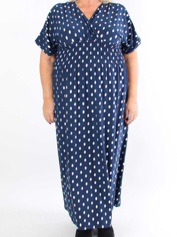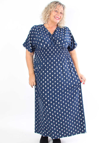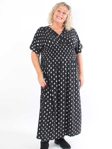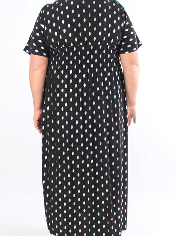 Pams Dot - Lång stretchig plus size-klänning med prickig detalj