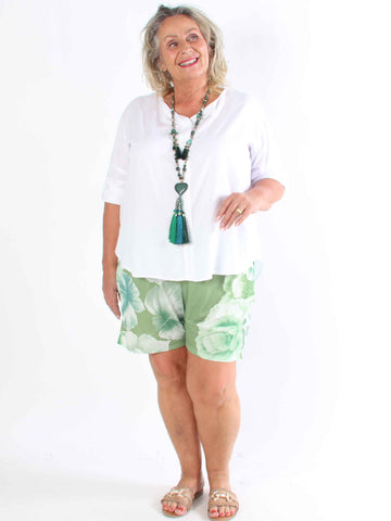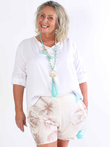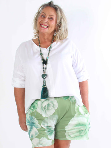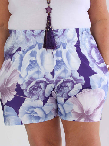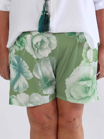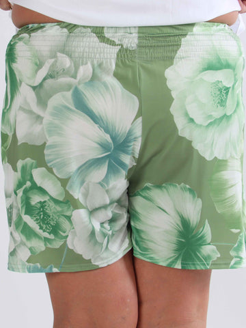 Pams Flower Shorts - Elastiska plus size-shorts med blommigt tryck