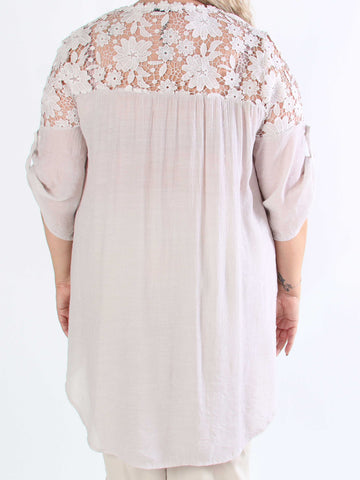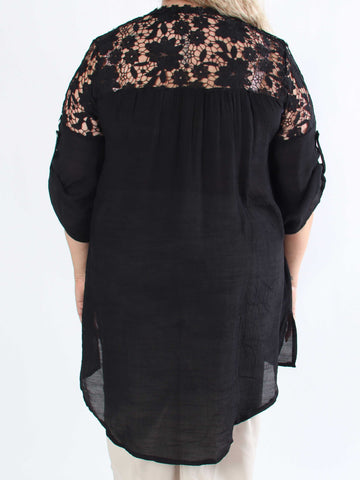Remi - Spetsblus i plusstorlek med transparent spets på ryggen
