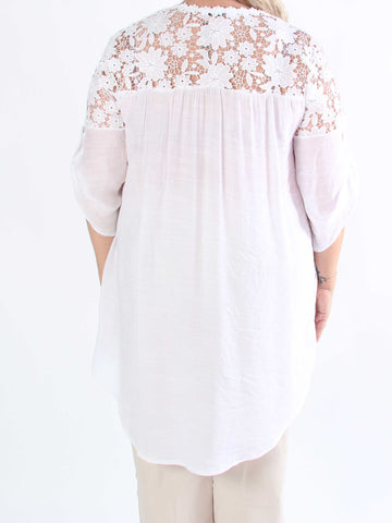 Elisa - Tunika i bomull med spets framtill och elastisk halsringning
