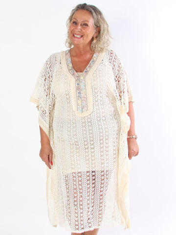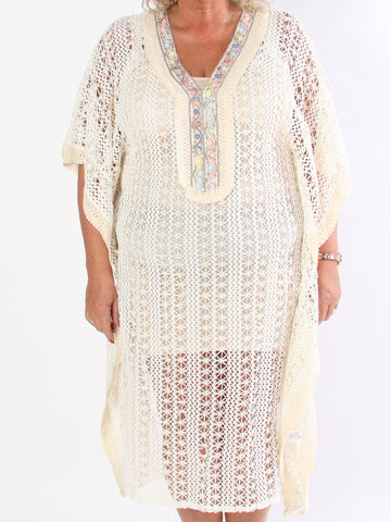 Ruby - Lång virkad bohemisk plus size tunikaklänning