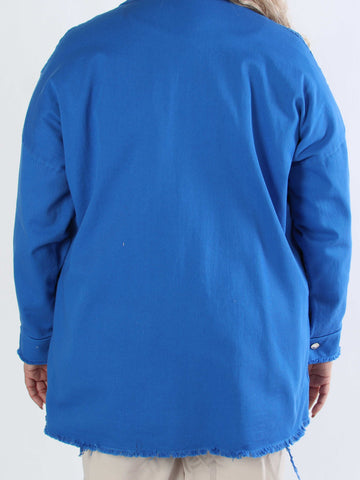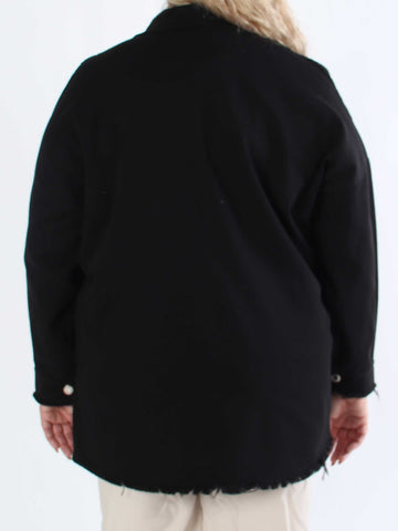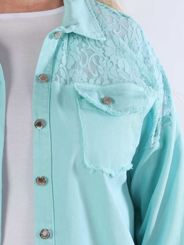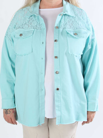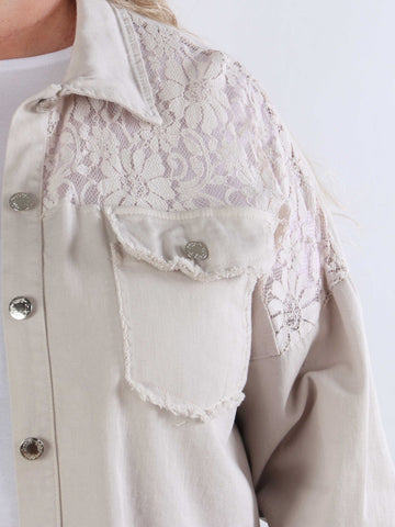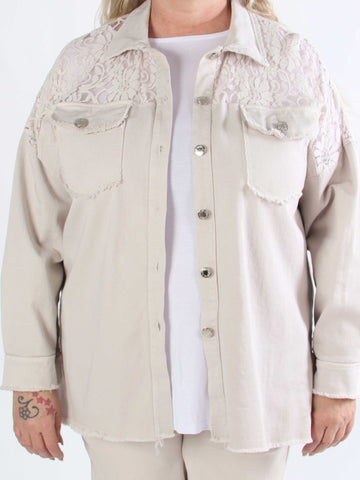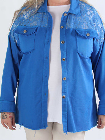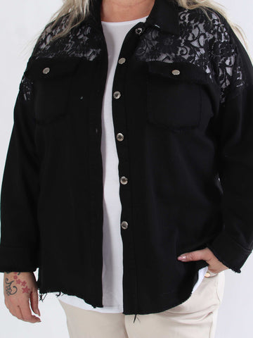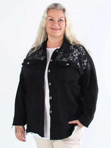 Scarlett - Jeansjacka i plusstorlek med spets på axlarna