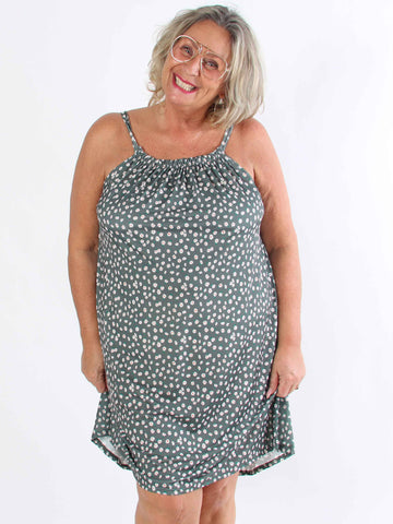 Pams Leaf Short - Kort elastisk plus size-klänning i skrynkelfritt tyg