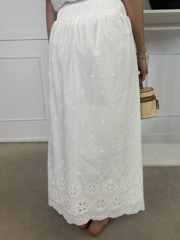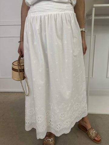 Susan - Söt kjol i vit bomull med broderie anglaise