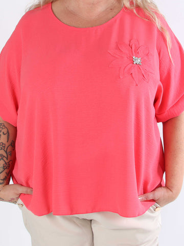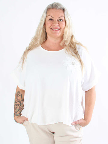 Tabisha - Plus size-tunika med blomma och strass på bröstet