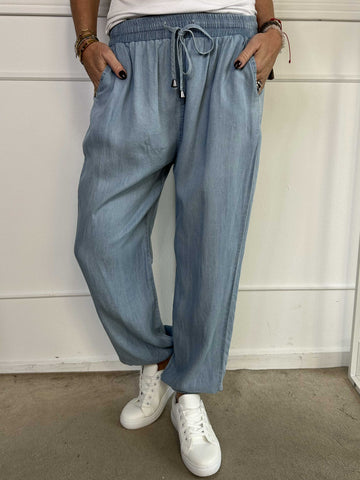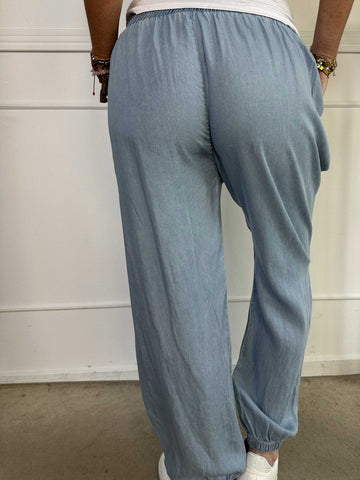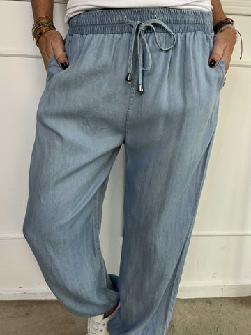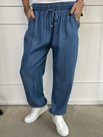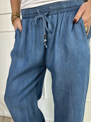 Andie - Lös byxa i denimlook med resår i midjan