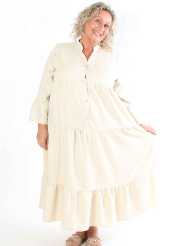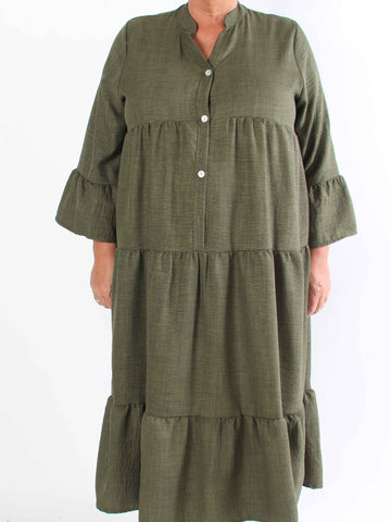 Arjana - Plus size-klänning med lager-på-lager-look och knappar