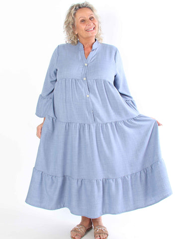 Milano Denim Midi - Plus size-klänning i viskos med lager-på-lager-look