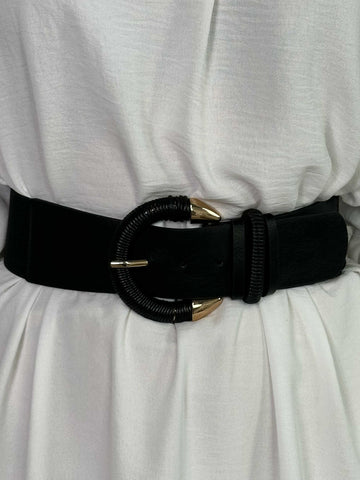 Emily - Elastiskt midjebälte med detaljer i läderlook
