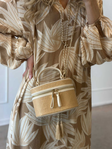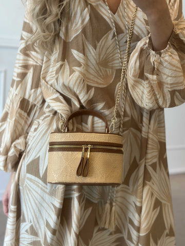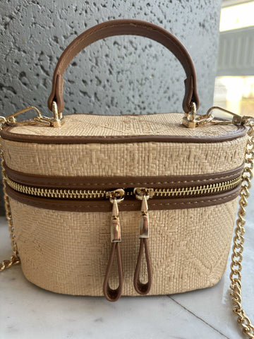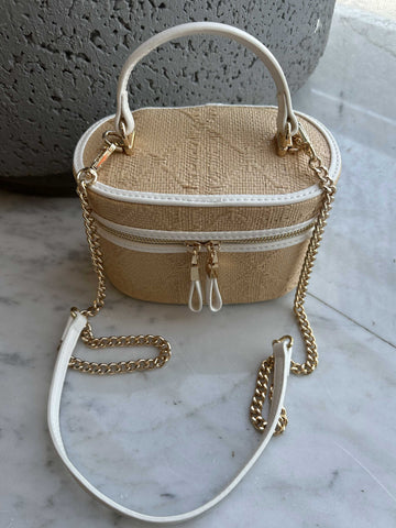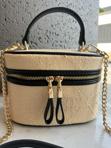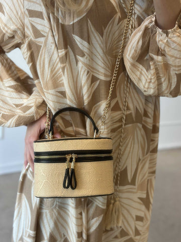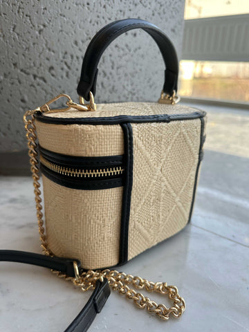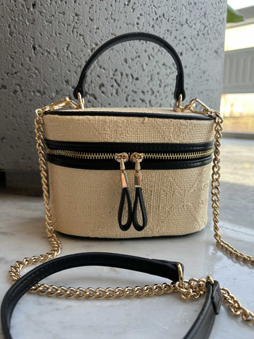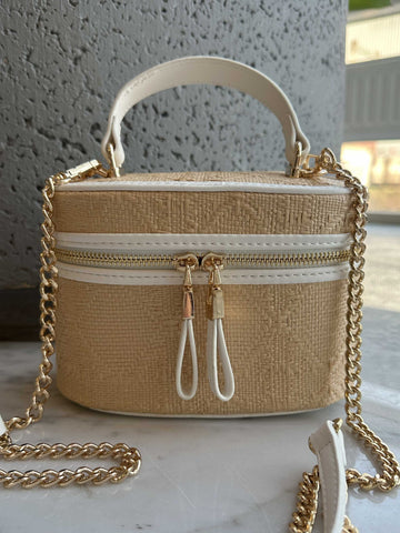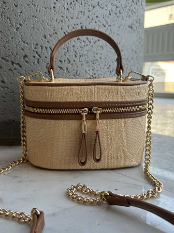 Ana - Söt handväska i rotting med guldkedja