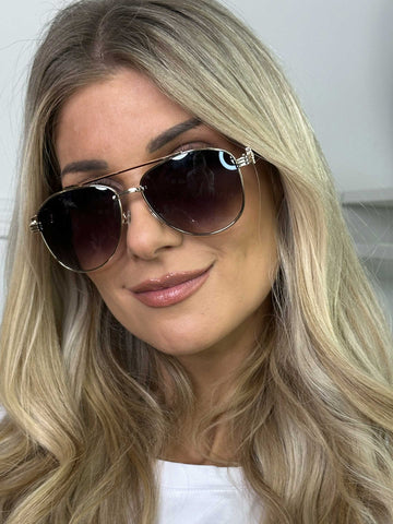 Madison - Solglasögon med smal båge och gulddetaljer