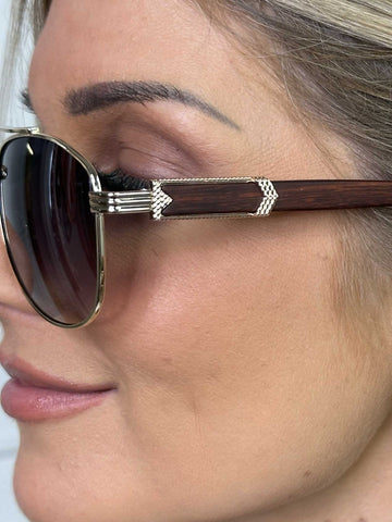 Lindas - Solglasögon i guld med båge i trälook